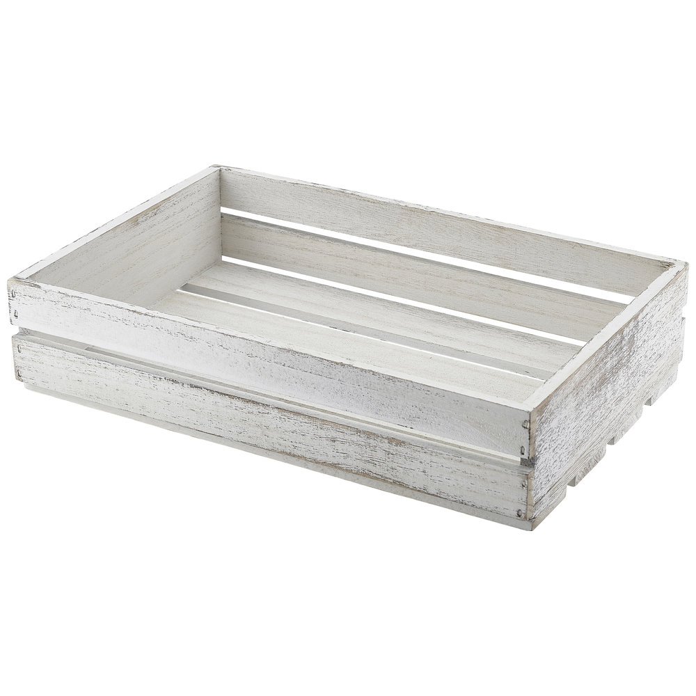 Genware White Wash Wooden Crate 35 x 23 x 8cm (TR225W) GENTR225W
