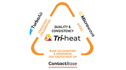 The unique Tri-Heat technology is game changing in terms of the quality of cook it delivers. A rear launched microwave with stirrer brings speed to the cooking process. TurboAir distributes high speed airflow in a cylindrical pattern over the food for fast even colouration. Adjustable temperature control, rapid heat up and direct cooking on the toughened neo ceram ContactBase delivers perfect base colouration and crispiness - there is no soggy bottoms with CiBO+!
